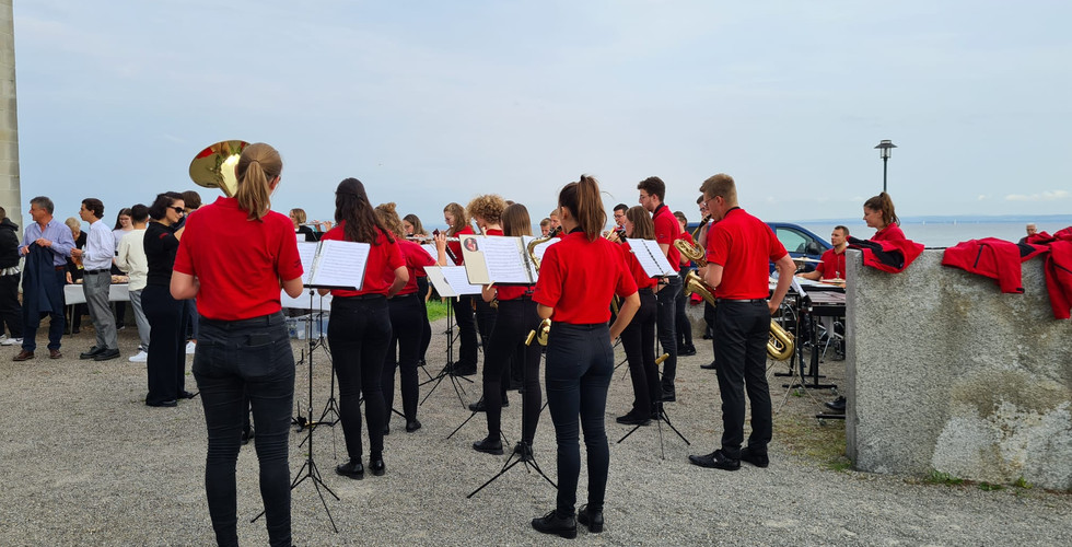 Am Sonntag, 26.09.21 durften wir die Konfirmanden und Konfirmandinnen von Horn nach ihrem Gottesdienst vor der evangelischen Kirche mit einem Konzert empfangen. Währenddem wir gespielt haben, genossen die Gäste ein Apéro auf dem Vorplatz der Kirche. Es wurden viele Fotos von den Konfirmandinnen und Konfirmanden mit ihren Familien am See gemacht.